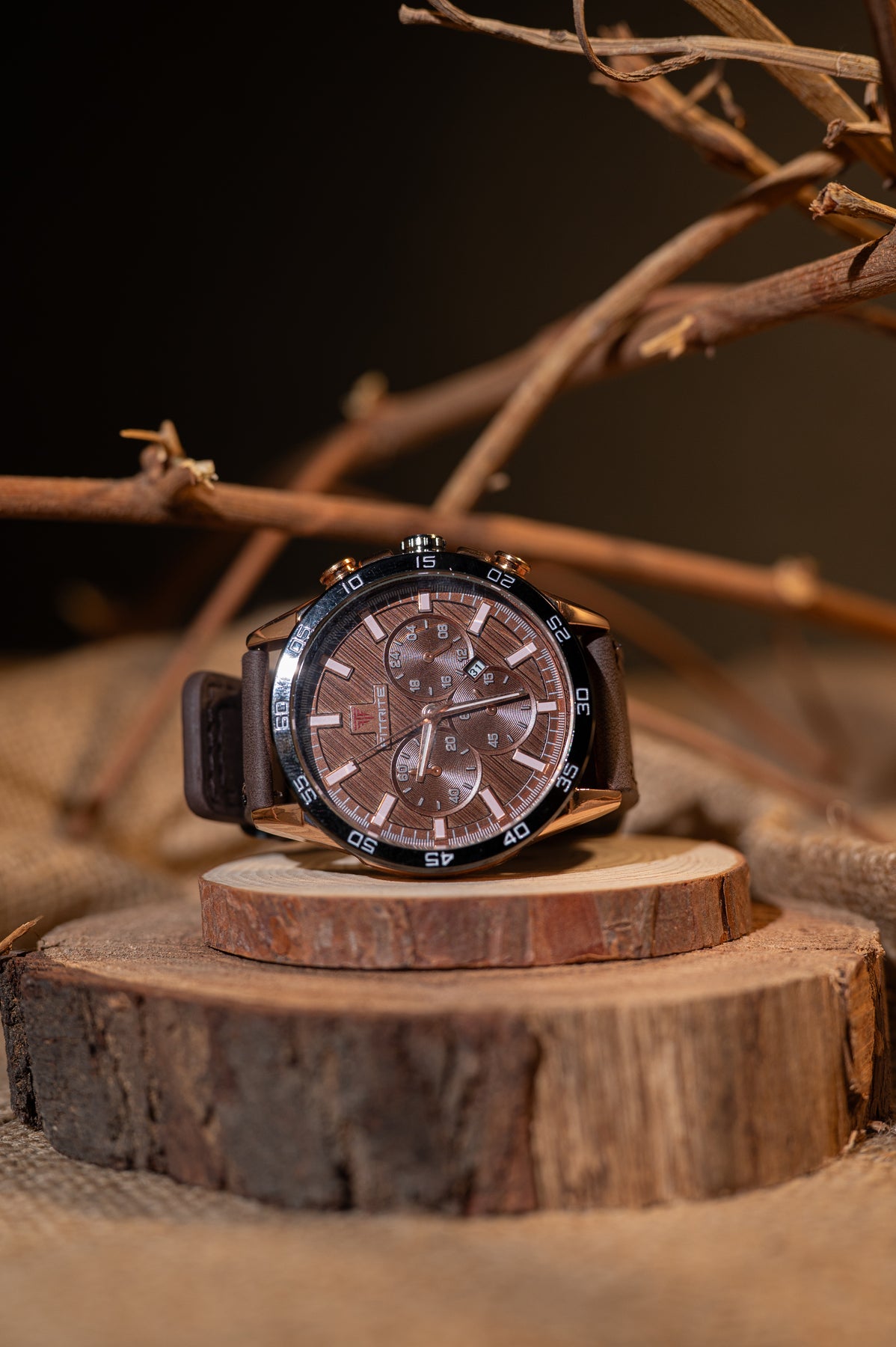 The Fitrite Watch is crafted for men who value both precision and sophistication. With its bold design and modern aesthetics, this timepiece combines durability with elegance. The crisp white dial, detailed markings, and black leather strap make it versatile enough to match formal suits, smart casuals, and everyday wear.